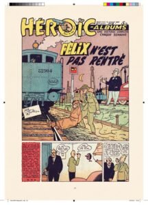 Il n’est donc pas question de publier une version colorisée des aventures de Félix, comme l’ont fait autrefois certains éditeurs, mais bien de se rapprocher d’un fac-similé des Héroïc-Albums. A la seule exception que le format de notre album (environ 21 x 31 cm) sera légèrement plus grand que celui des Héroïc-Albums (17,5 x 26 cm), ce qui permettra d’apprécier encore mieux les superbes dessins de Maurice Tillieux.